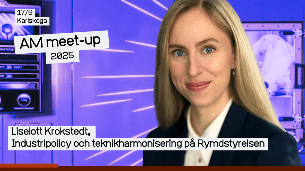 Med Liselott Krokstedt på scen i Karlskoga får AM Meet-up-deltagarna en unik inblick i hur rymdsektorns arbete kan inspirera fler branscher – och bidra till att forma framtidens lokala, hållbara och konkurrenskraftiga tillverkning även här på jorden.